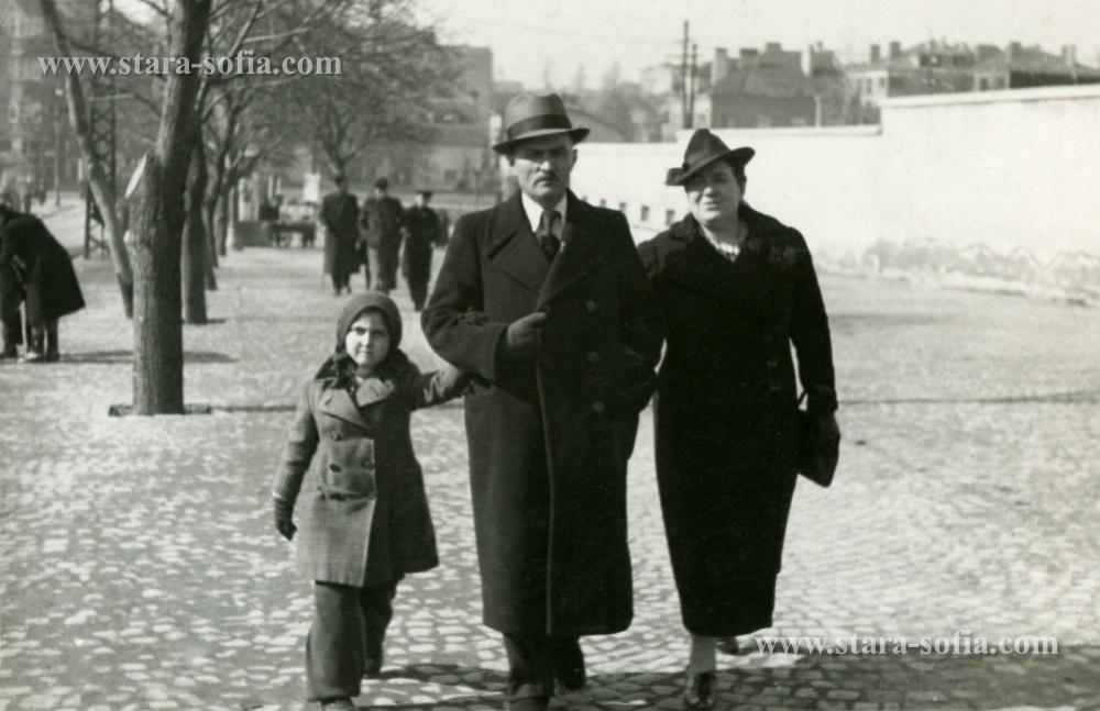 Семейство на разходка, 30-те години. Вдясно е оградата на игрище