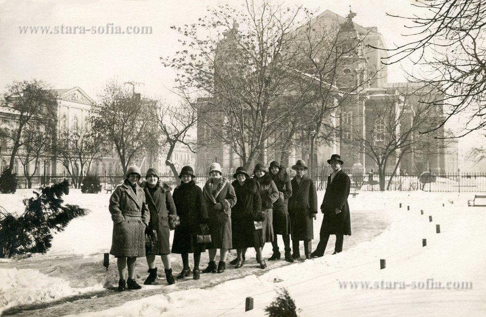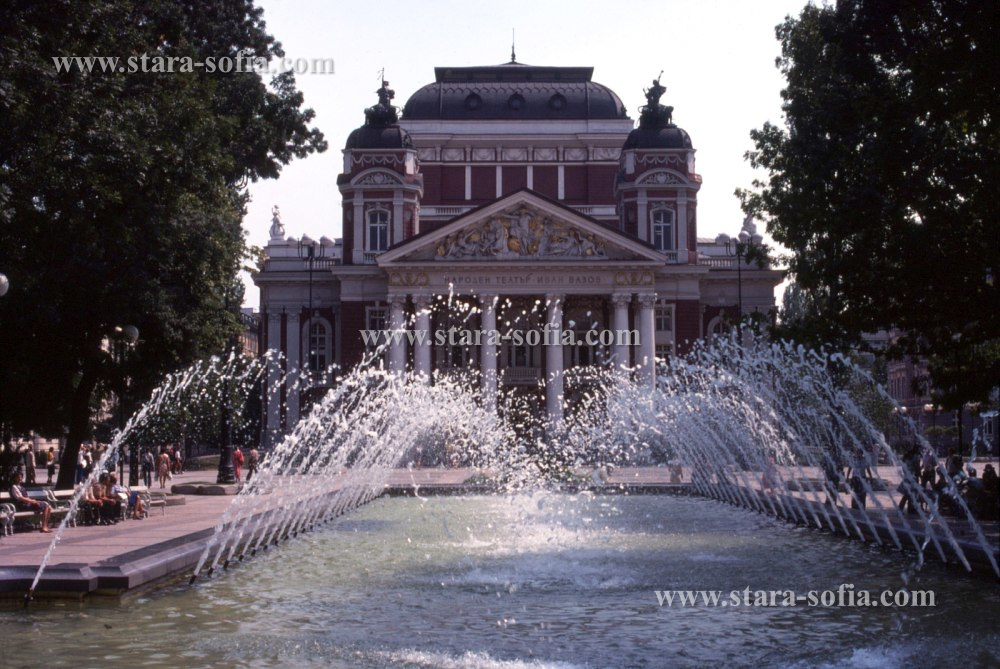 На заден план се извисява обновеният Народен театър, а вдясно от