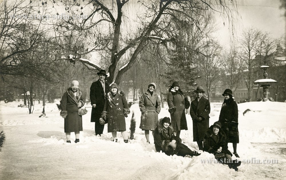 В Градската градина през 1918 г. Вижда се отново фонтанът с