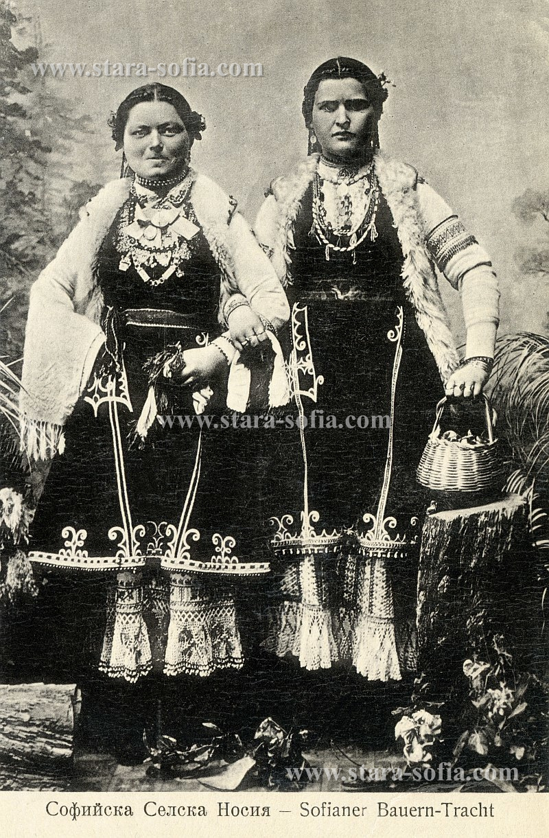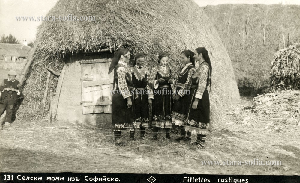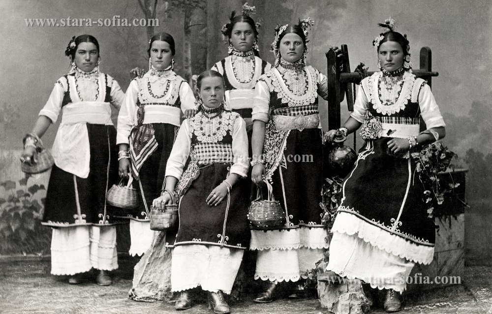 Момичета от софийските села в своите красиви празнични носии, края