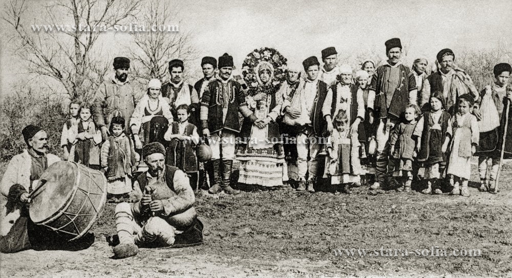 Горнобанска сватба, 1905 г. Младоженците са отбелязани с