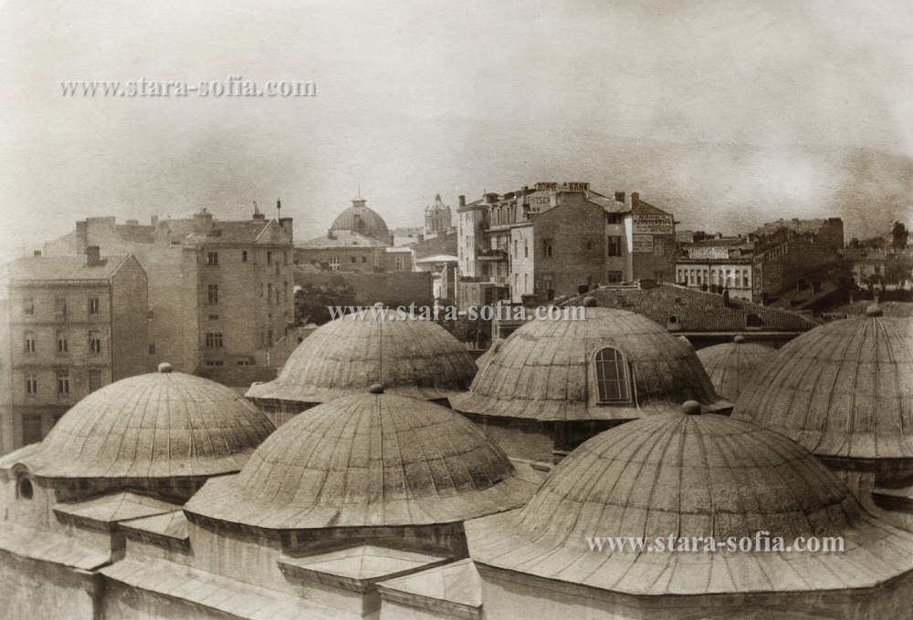 Поглед над софийските покриви, около 1920 г. Вдясно е улица