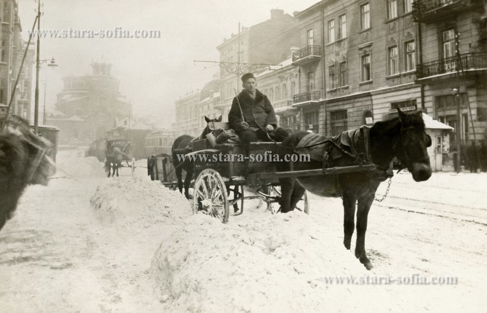 Зимна София - поглед от пресечката с улица "Лавеле", 30-те години