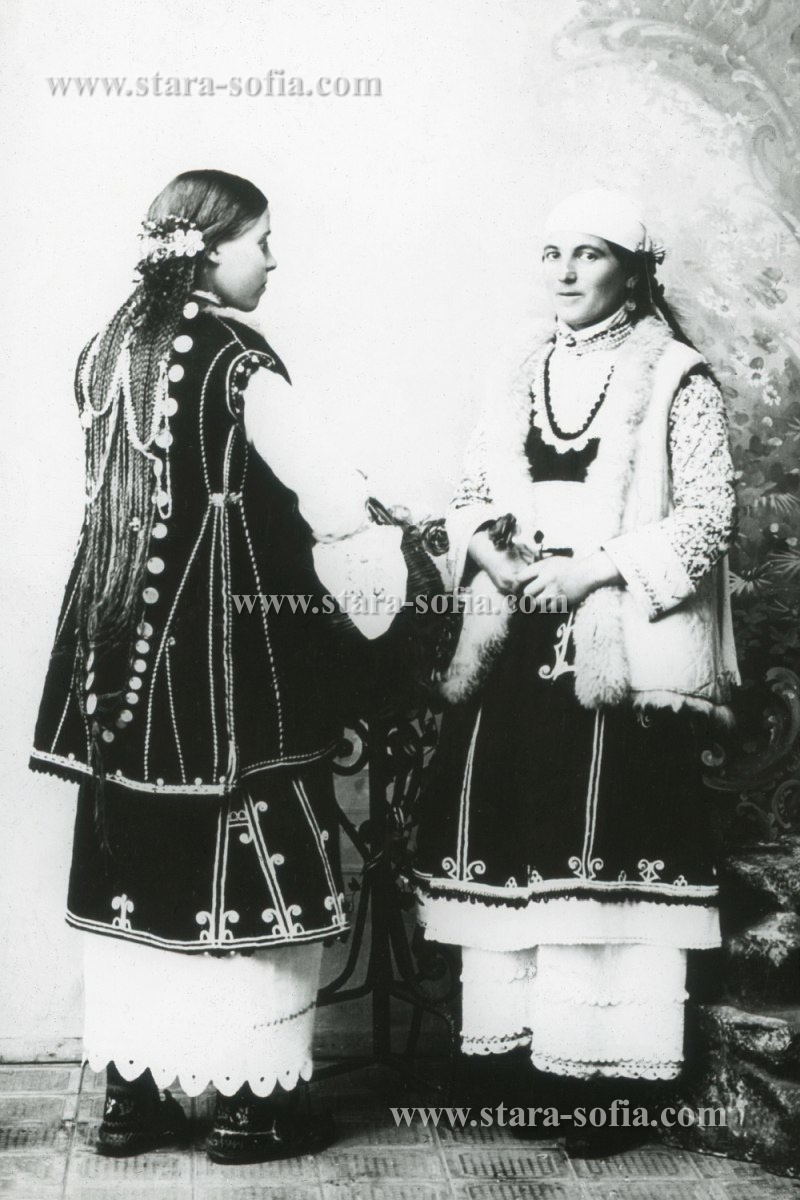 Момичета от софийските села в своите красиви празнични носии, края