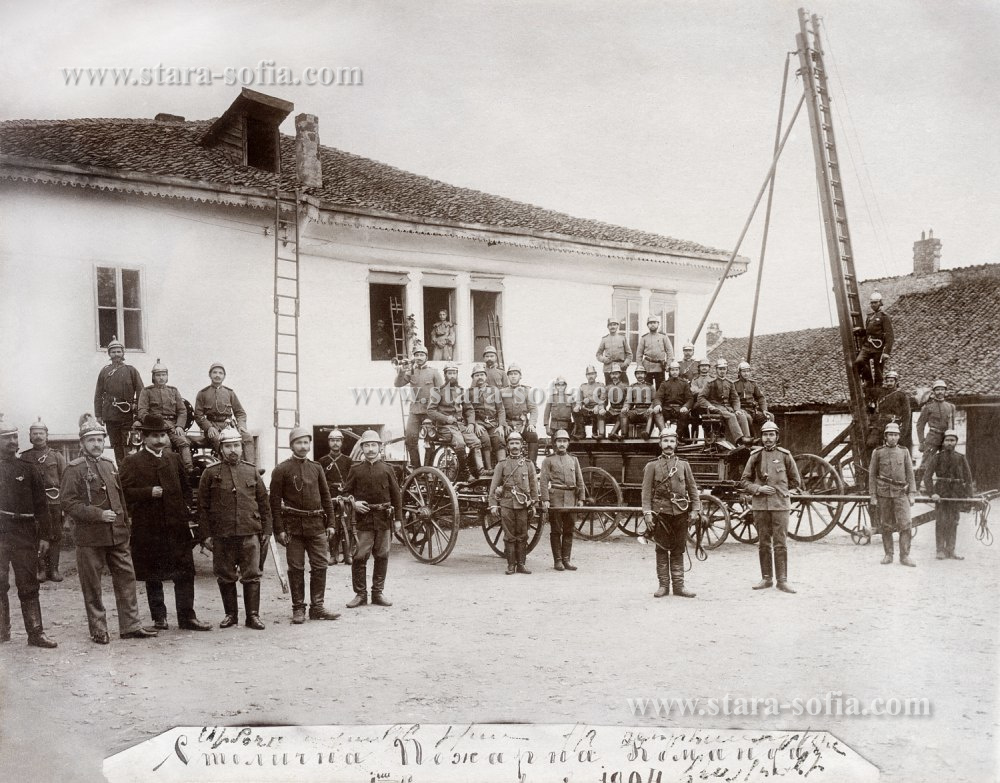 Столичните пожарникари с оборудването си, далечната 1904 г.