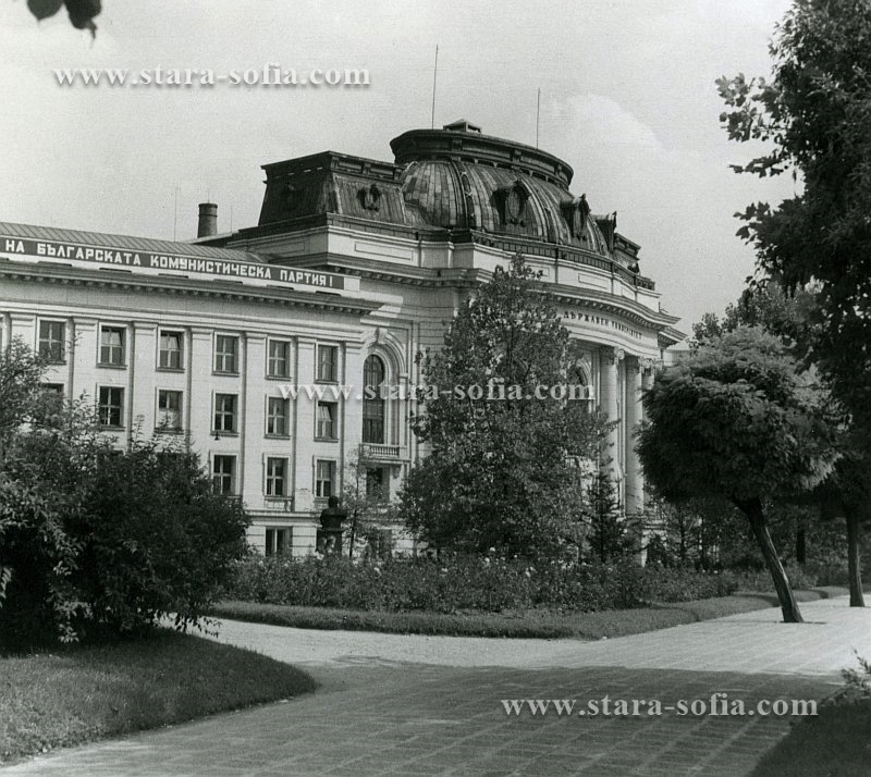 Столичните огнеборци потушават пожар в Софийския университет, 1946